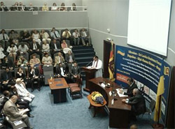 Позаду місць, де розмістилися президенти обох країн, розташований плакат з написом: "Його Высокоповажність Віктор Янукович" та "Його Высокоповажність Махінда Раджапакса".