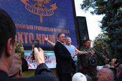 Коли атмосфера біля Верховної Ради трохи розрядилася, на площу вийшло кілька народних депутатів. Зокрема, серед мітингуючих можна було помітити лідера Радикальної партії України Олега Ляшка. "Красива у вас форма", - спробував він заговорити з групою демонстрантів. "Та пішов ти ...",- флегматично відповідали ті.