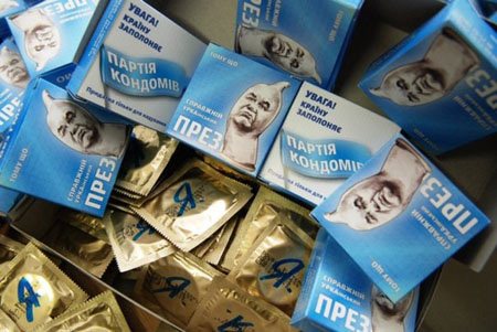 КУПР (Коаліція учасніків помаранчевої революції) спільно з ГІ Чорний Комітет 24 лютого планували організувати на головній площі столиці роздачу контрацептивів з біло-блакитною символікою. На упаковках презервативів розміщено напис "Партія кондомів".