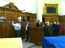 У залі засідань парламенту вже з’явилися нардепи. 15 депутатів від Партії регіонів заблокували президію Верховної Ради.