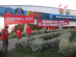 При тому, виступаючи на мітингу, місцевий комуністичний лідер, нардеп Грач зазначив, що у такий спосіб комуністи протестують проти політики Президента Ющенка, яка на його думку веде країну до краху.
